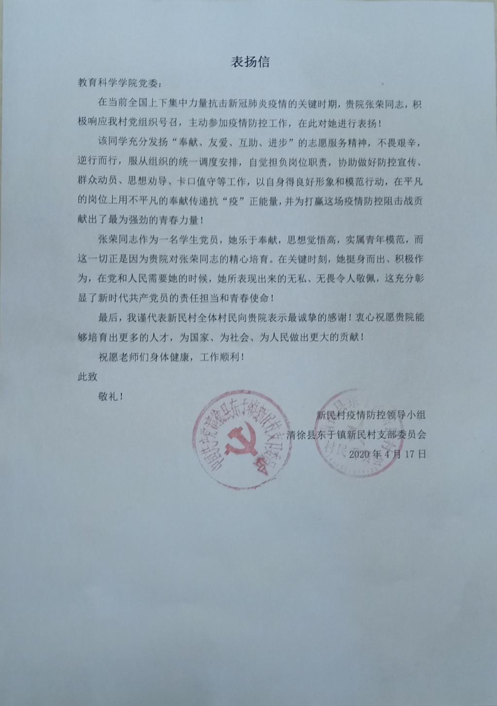 近日,公司收到了社会各界发来的多封表扬信,对公司“心研社”党支部员工党员在疫情期间积极响应号召,主动参与疫情防控工作,承担社会责任的行为提出了表扬。