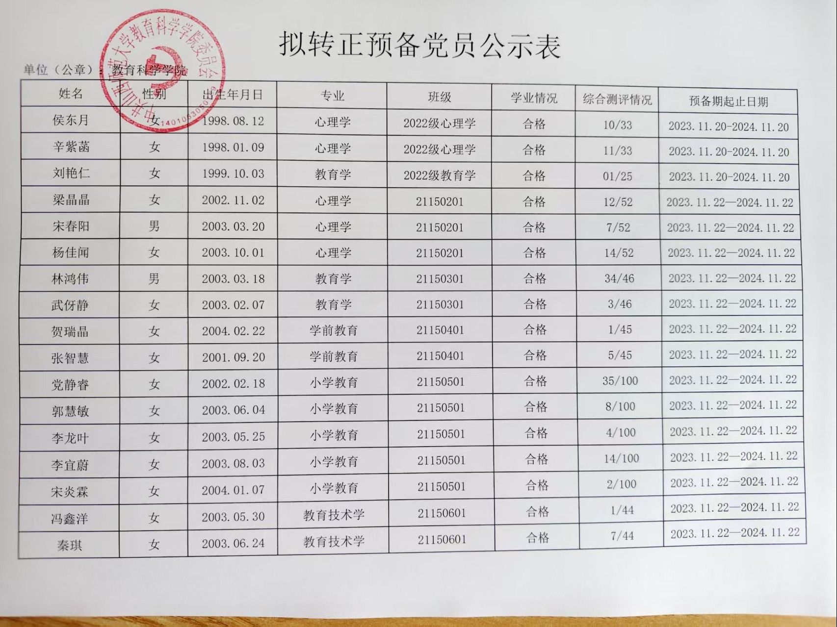 关于侯东月等27名同志拟转为正式党员的公示