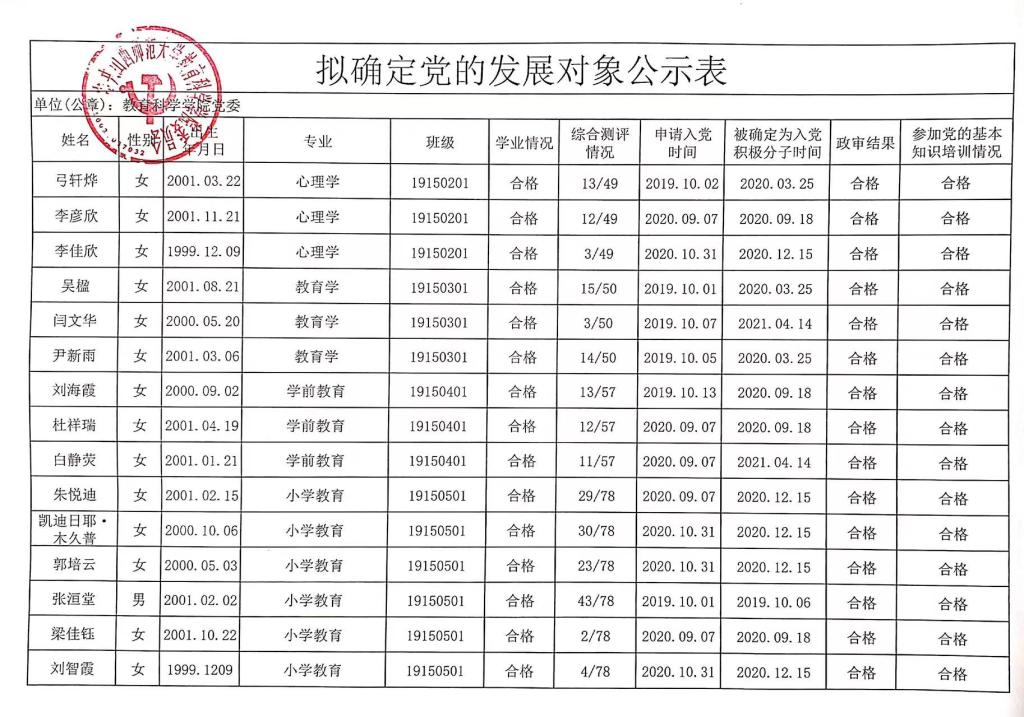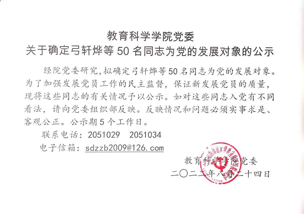 公司党委关于确定弓轩烨等50名同志为党的发展对象的公示