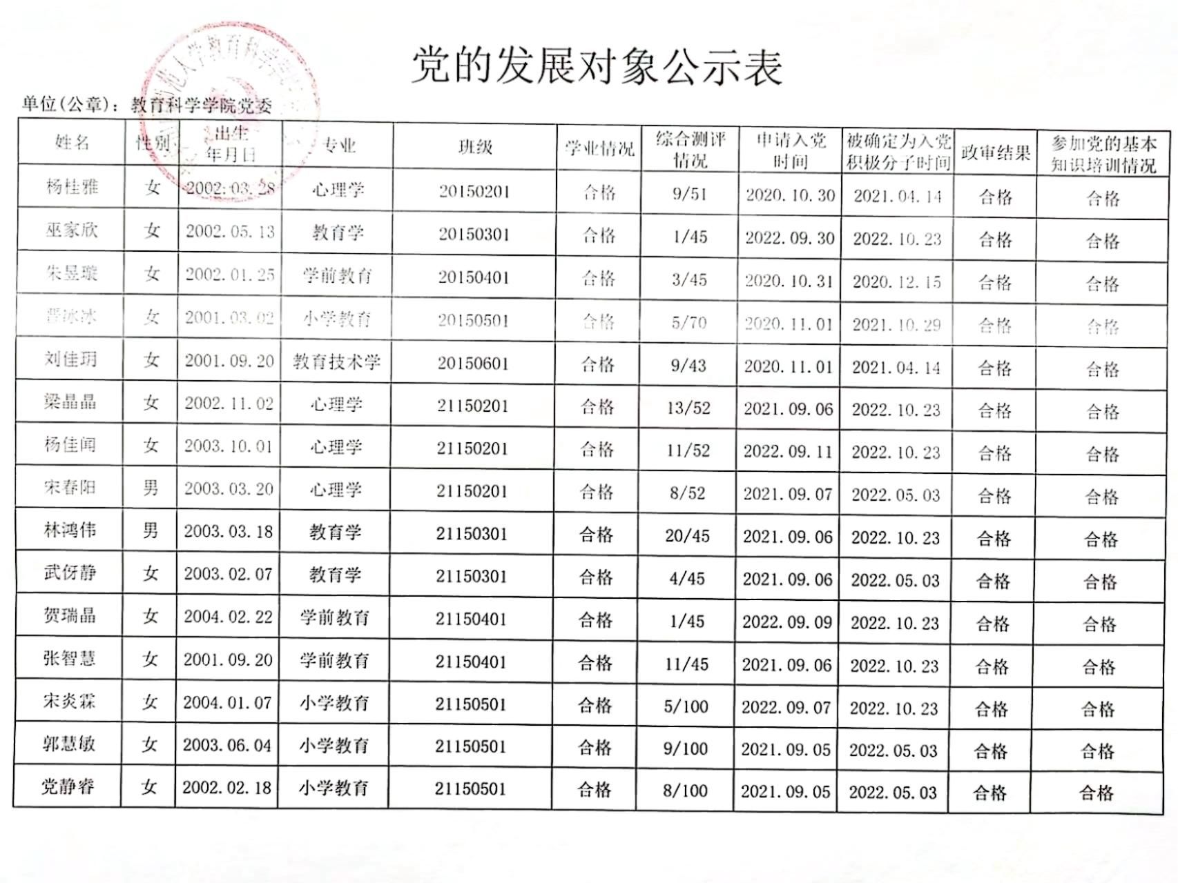 关于确定黄亚博等45名同志为党的发展对象的公示