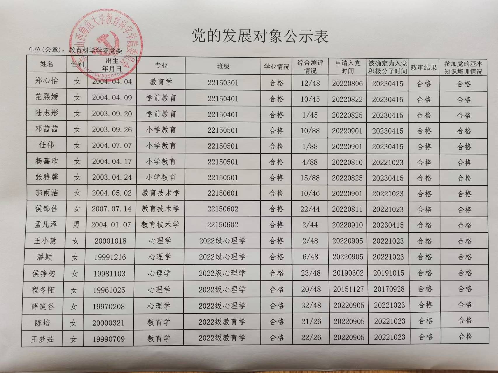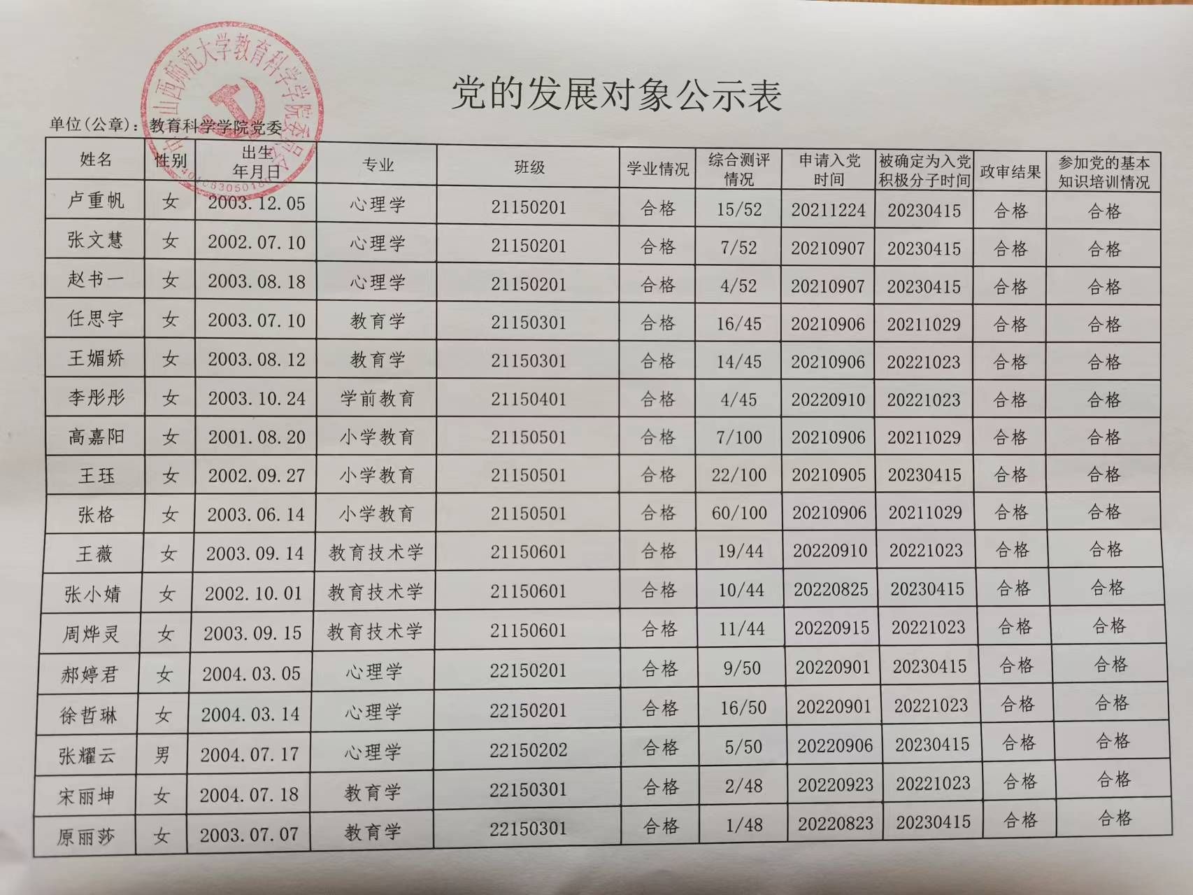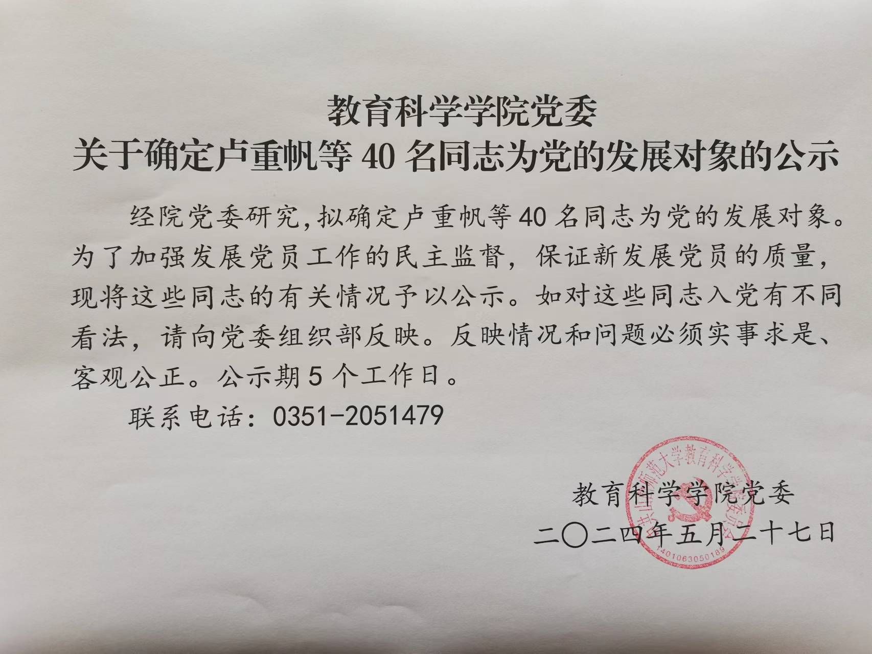 关于确定卢重帆等40名同志为党的发展对象的公示