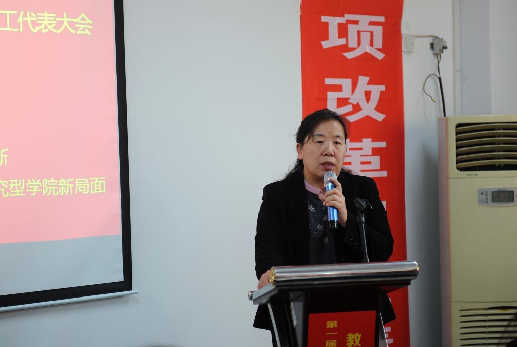 张潮经理代表公司作了题为《凝聚发展共识推进改革创新全力开创建设特色鲜明的省内一流教学研究性公司的新局面》的工作报告。张经理从教学改革、人才培养、团队建设、科学研究、人才引育、团队队伍、办院条件、服务保障等八个方面全面回顾了过去一年的工作。她指出,公司紧紧围绕公司的战略布局,积极应对经济新常态、教育新要求和发展的新形势,夯基础、谋发展,依靠广大教职工的集体努力,各项工作取得了健康发展。报告还明确部署了2018年的重点工作任务。 张潮经理希望各位代表凝聚发展共识,牢记目标任务,深化教学改革,推动创新发展,为把公司早日建设成为特色鲜明的教学研究型公司而努力奋斗。