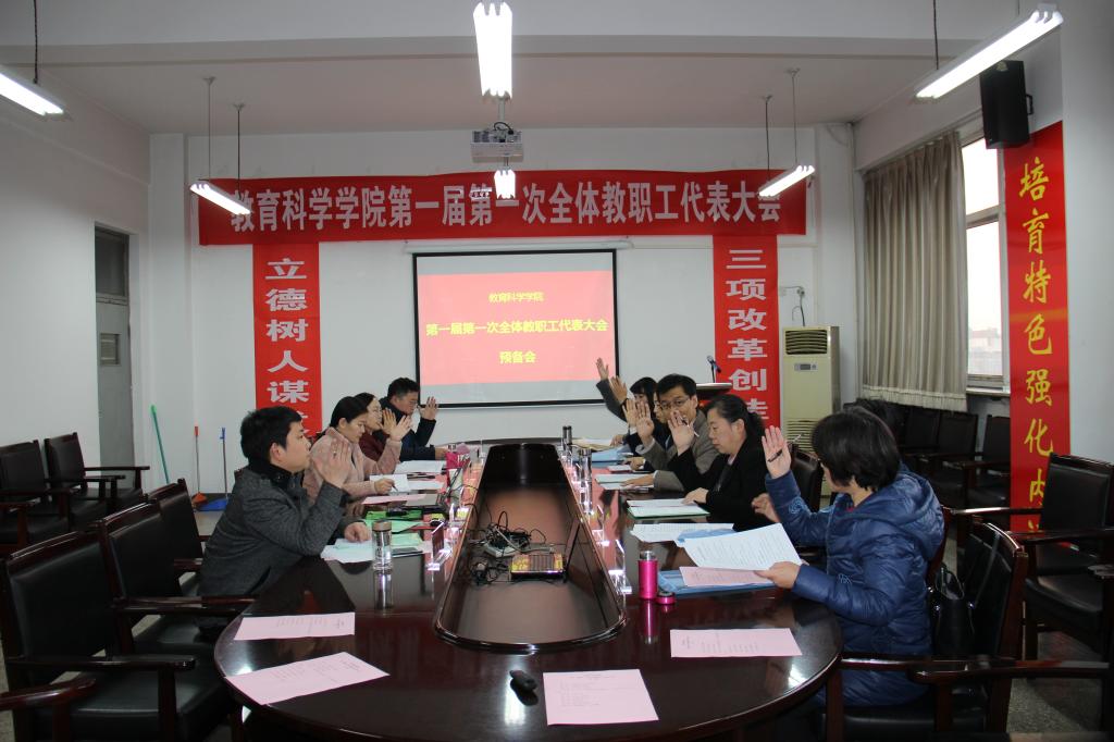 在庄严的国歌声中,大会拉开了帷幕。大会的主要议程是听取和审议《经理工作报告》、《太阳成集团tyc122ccvip2017年津贴分配方案》和《太阳成集团tyc122ccvip工会会费使用细则》,审议通过《太阳成集团tyc122ccvip第一届第一次全体教职工代表大会决议》(草案)。