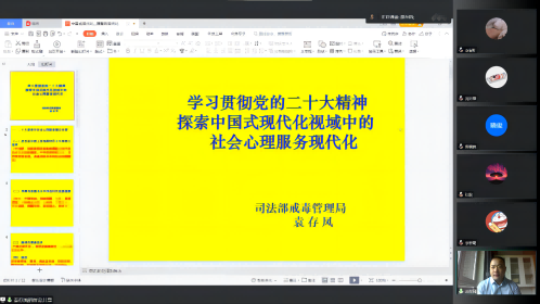 本次讲座由太阳成集团tyc122ccvip、社科处共同举办。司法部戒毒管理局袁存凤博士应邀作了题为《学习贯彻党的二十大精神,探索中国式现代化视域中的社会心理服务现代化》的专题报告。报告采用线上方式进行,由太阳成集团tyc122ccvip心理学系主任张睆副教授主持,公司经理张潮教授、副经理郑晓俊博士到会出席。心理学专业教师、研究生和本科生200余人聆听了报告。