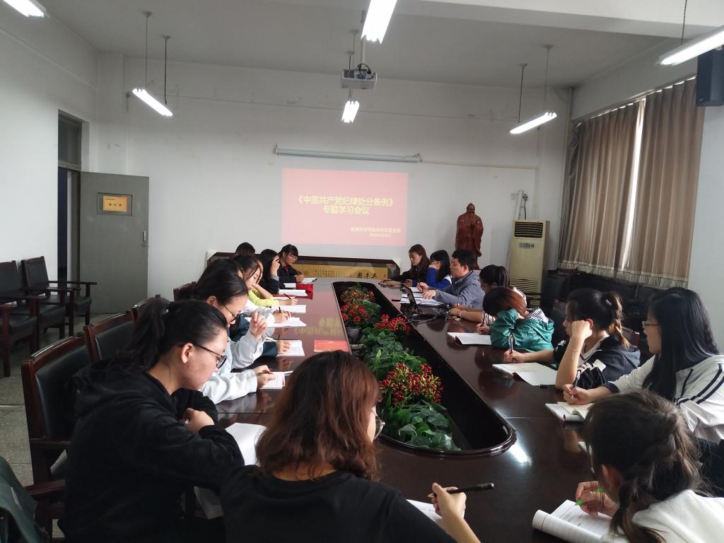 2018年9月20日下午,太阳成集团tyc122ccvip本科生党支部在田家炳书院509会议室开展了《中国共产党纪律处分条例》专题学习会议。本科生党支部书记宁志恒老师和在校本科生党员参加了此次专题学习会。