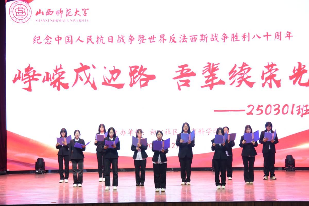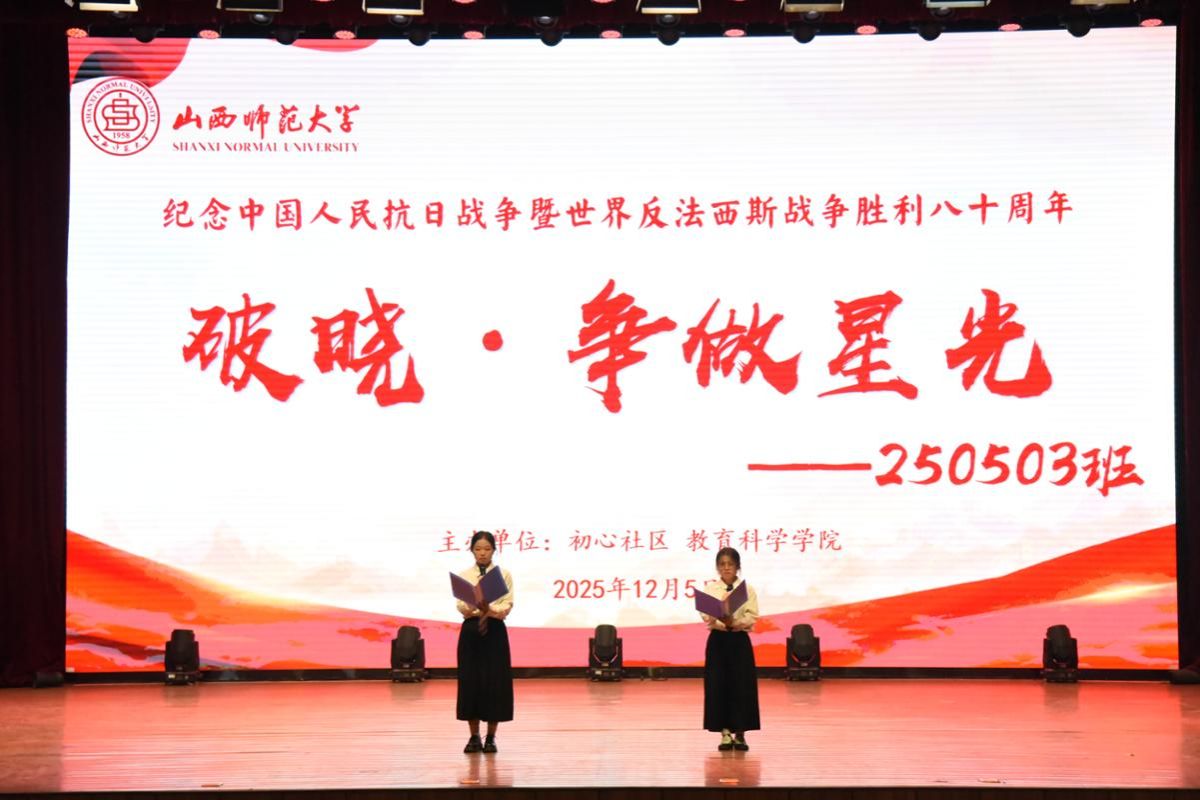 活动现场,同学们满怀赤诚深情,《追光者,正青春》《山河不忘,青春作答》《峥嵘戍边路,吾辈续荣光》以铿锵之音回溯峥嵘岁月、再现英雄事迹,表达对革命先烈的崇高敬意;《承三晋英气,护家国长安》《礼赞祖国,青春同行》立足当下、展望未来,彰显青年一代传承革命精神、勇担时代使命的坚定信念;《破晓:争做星火》《宣讲红色薪火,歌唱锦绣山河》以青春热血传承红色基因,抒发与祖国同向同行的赤子情怀。