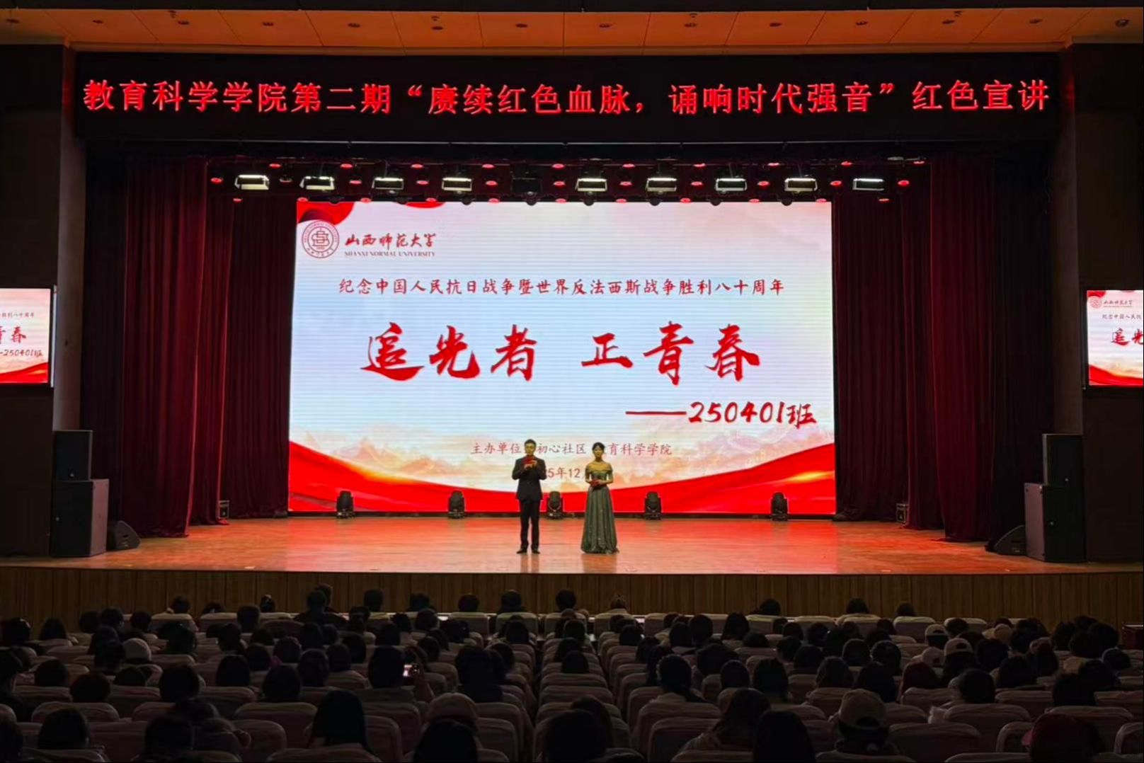 为纪念中国人民抗日战争暨世界反法西斯战争胜利八十周年,12月5日,公司在南区科学会堂报告厅举办初心社区第二期“赓续红色血脉,诵响时代强音”红色宣讲活动,公司党委书记闫建璋、经理赵英、公司党委副书记高霞及辅导员代表出席活动,2025级全体新生参加活动。