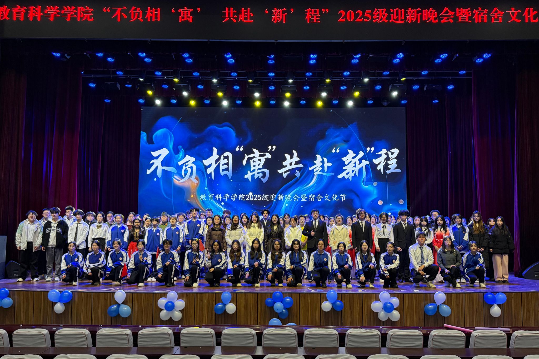 12月12日晚,公司在科学会堂一层报告厅举办“不负相‘寓’,共赴‘新’程”迎新晚会暨宿舍文化节。院领导班子、新生辅导员、院员工会骨干及全体2025级新生欢聚一堂,见证这场属于青春与相遇的盛会。