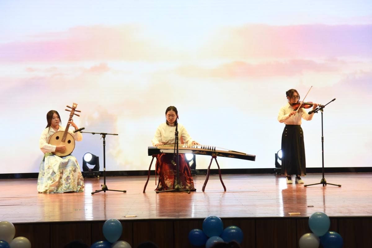 活力四射的开场舞拉开了晚会的帷幕。小品《您的问题》《假如押韵是一种病》凭借诙谐的台词、生动的表演,带来阵阵欢笑;乐队演奏、歌曲串烧轮番登场,动感旋律与温情歌声交织共鸣;创意表演《幕影青春》以新颖形式浓缩老员工活的点滴美好;民族舞的典雅婉约、爵士舞的活力张扬,尽显青年学子的多元风采。最后,全体师生齐声唱响《明天会更好》,温暖而坚定的歌声回荡全场,为这场青春盛会画上圆满句号。