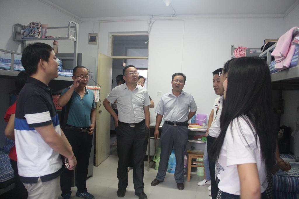 9月8日下午6点,经理董新良、公司党委副书记王银、公司副经理闫建章、张潮,教育系系主任肖军虎老师,院团委书记宁志恒、新生辅导员及团委员工会干部一行前往新松宿舍看望2016级新生。