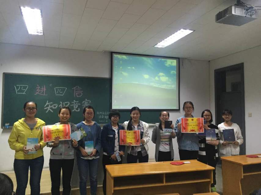 整场比赛的气氛活跃热烈,各参赛队的队员们团结协作、密切配合、反应迅速,竞相展现扎实的“四进四信”知识水平。经过激烈角逐,最终,150501班代表队荣获一等奖,150401班代表队荣获二等奖,140201班代表队荣获三等奖。