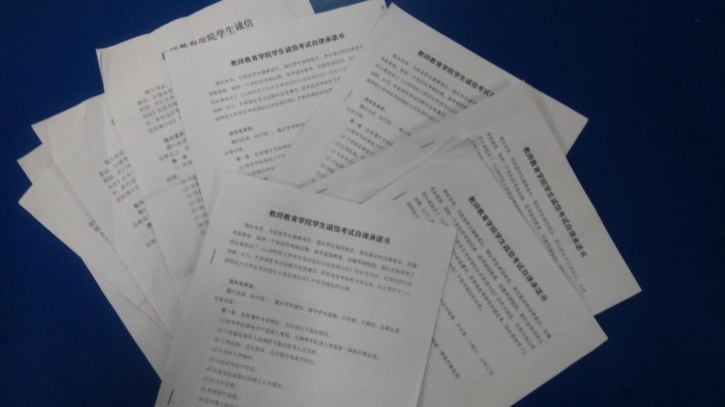 公司团委员工会积极响应院学工组的要求,通过网络新媒体等渠道,向全院员工发出了“诚信考试,拒绝作弊”的倡议,努力营造“诚信考试光荣,违纪作弊可耻”的考试氛围;各班员工也自觉加入到了诚信考试的教育活动中去,签订了《老员工考试诚信自律承诺书》并郑重承诺:履约践诺,知行统一;遵从学术规范,恪守学术道德,不作弊,不剽窃,自尊自爱,自省自律。