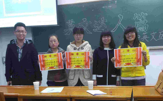 11月15日,公司团委员工会MUN举办了“英文达人”篇的比赛,选手们凭借着日积月累的英语经验和对英文的热情在活动中大显身手,最终,1202班许馨芳同学和1204班秦雅慧同学成功突围,将代表公司参加校级未来教师素质大赛的英文达人比赛。