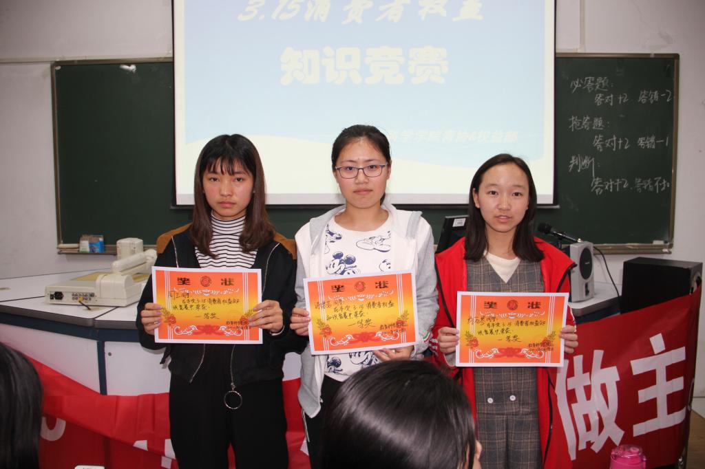 竞赛分为选择题、判断题和抢答题三个环节。首先,由各小组成员根据自己所掌握的知识进行分组答题。随后,再由院权益部分享有关维权方面的知识。整场比赛气氛活跃热烈,各参赛队队员反应迅速,配合密切,竞相展现出了扎实的“3·15”消费维权知识水平。