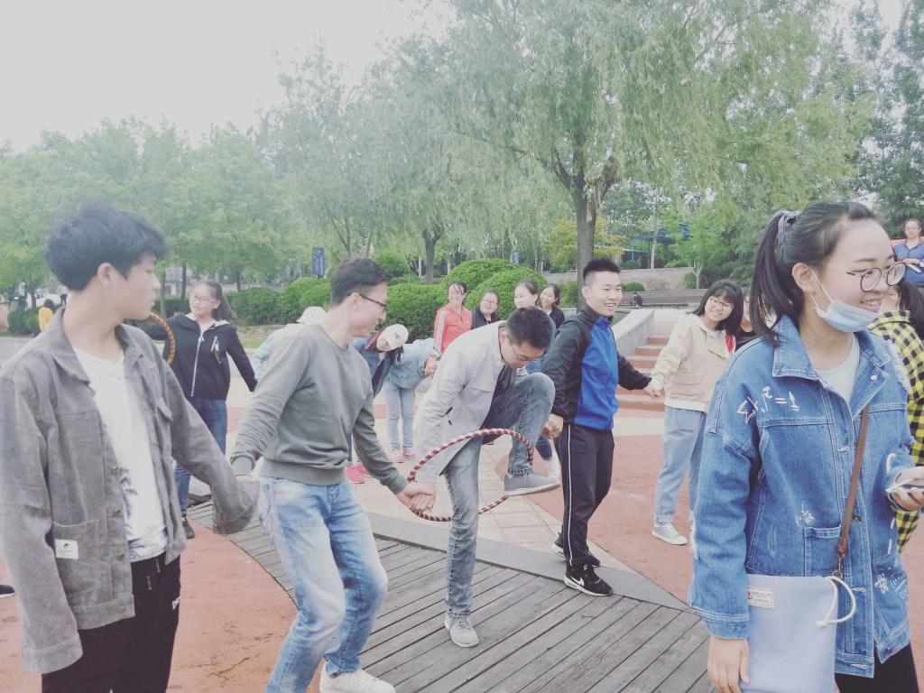 活动初,负责人将大家分成三个小组开始活动。“智传呼啦圈”--各组员都尽力让呼啦圈以最快的速度传给下一个组员;“扫雷”--被派出去蒙住眼睛的队员在其队友的指挥下从入口分别进入自己的障碍道路,为了能以最快速度完成,队友们热情地呐喊加油,活动气氛被推向了高潮; “方言传话”--让彼此更加熟识对方; “趣味答题”--让组员们通过回答由抽签拿到的心理问题,合力作答,不仅提高了活动的趣味性,又增进了大家对心理学的了解。