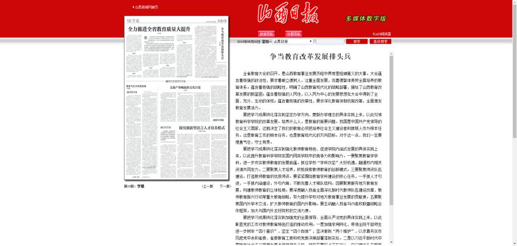 编者按:5月20日,《山西日报》(第10版学思版)刊发公司党委书记吴文国署名文章《争当教育改革发展排头兵》,现将全文转载如下。