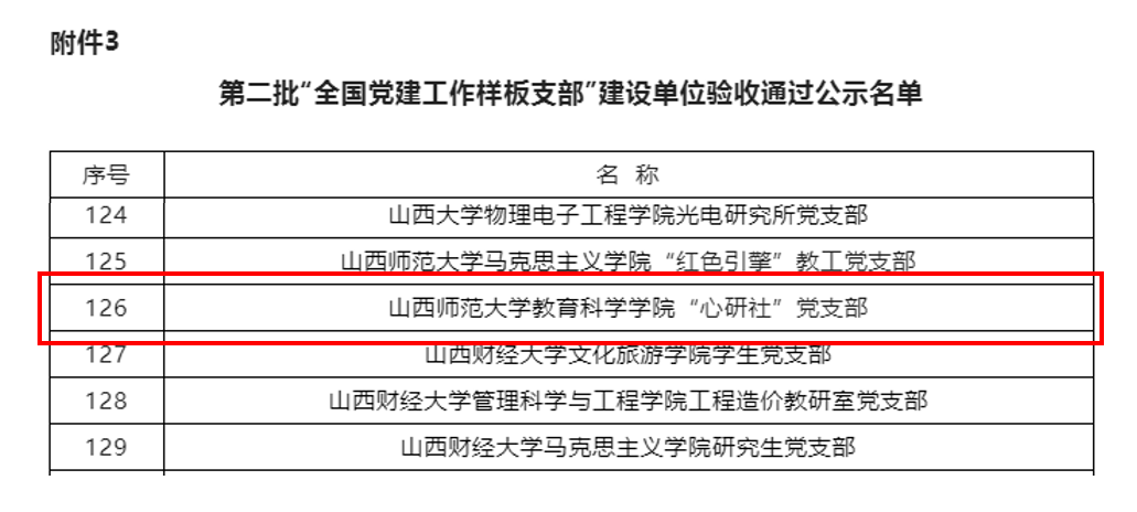 近日,教育部思想政治工作司公布了第二批新时代高公司党建示范创建和质量创优工作验收结果,公司“心研社”党支部顺利通过验收。