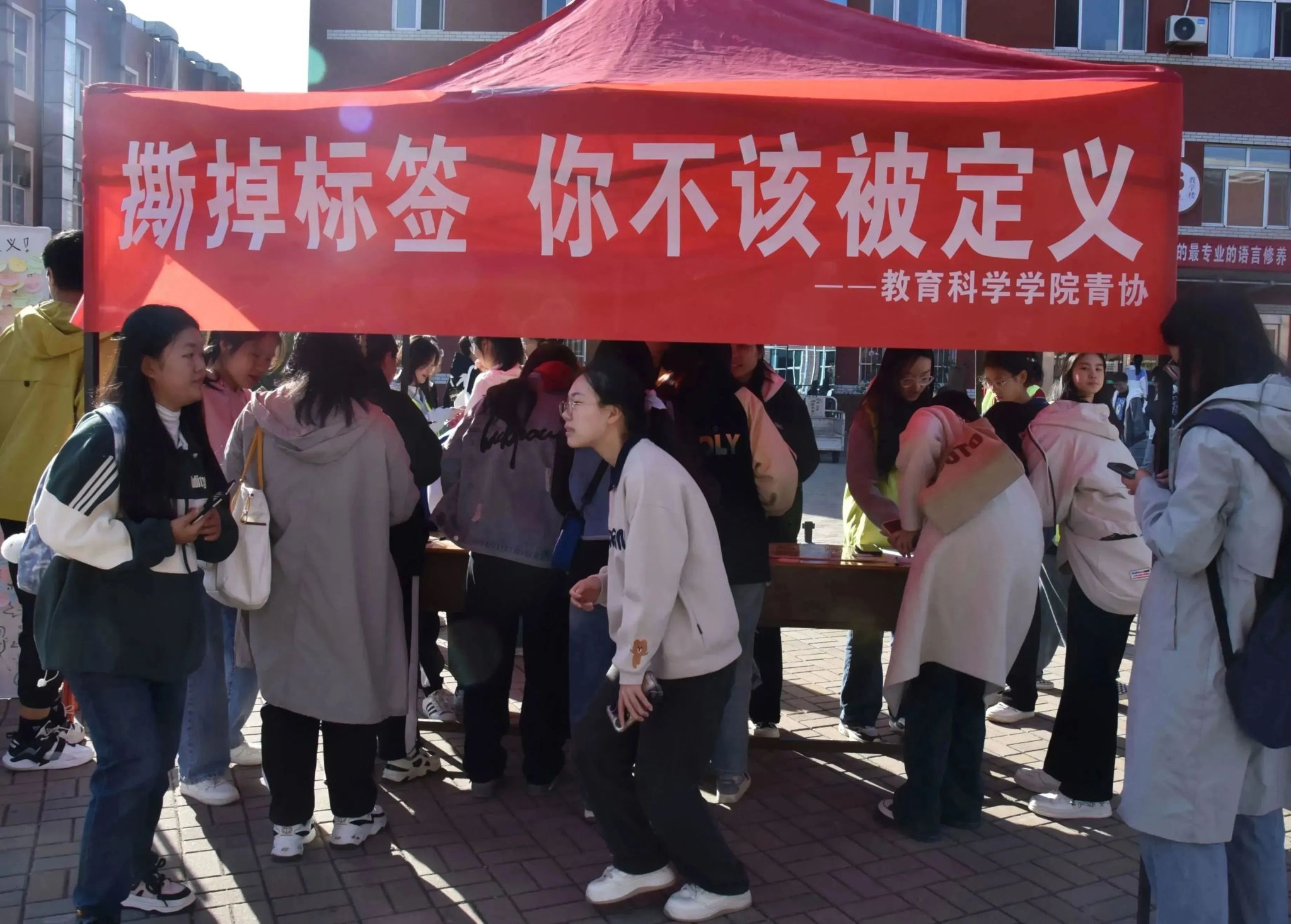 11月4日,公司青年志愿者协会在六号教学楼前开展“撕掉标签,你不该被定义”活动。