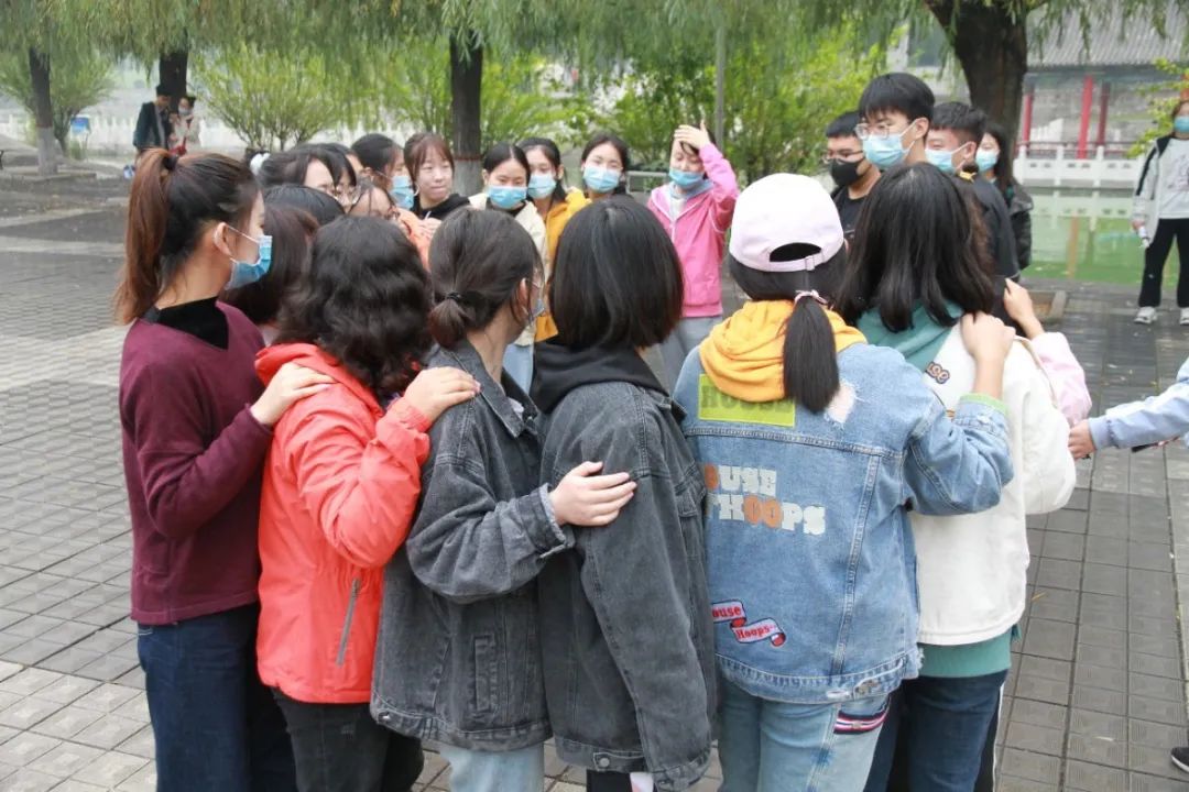 在团员干部对活动进行简短的介绍之后,破冰活动正式开始。破冰活动项目分为班级活动和院级活动,班级活动包括了“盲人指路”和“桃花朵朵开”,院级活动则由“人体气球”、“坐地起身”、“纵横天下”、“人椅”、“爬虫竞走”组成。历经一个半小时的合作和挑战,新生们在引导员的指导和带领下,认真完成了每个项目。活动最后,团员干部与新生集体合影留念,为本次破冰画上了一个圆满的句号。