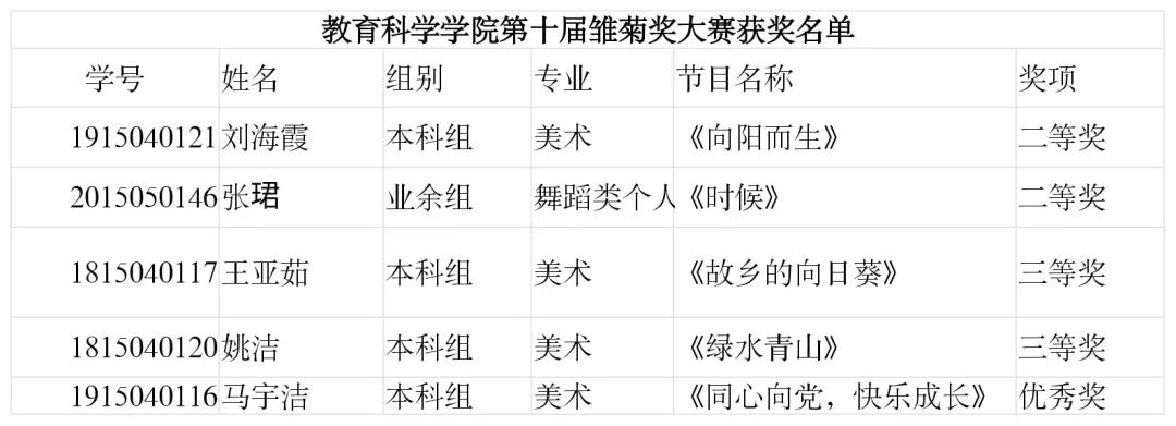 获奖名单如下: