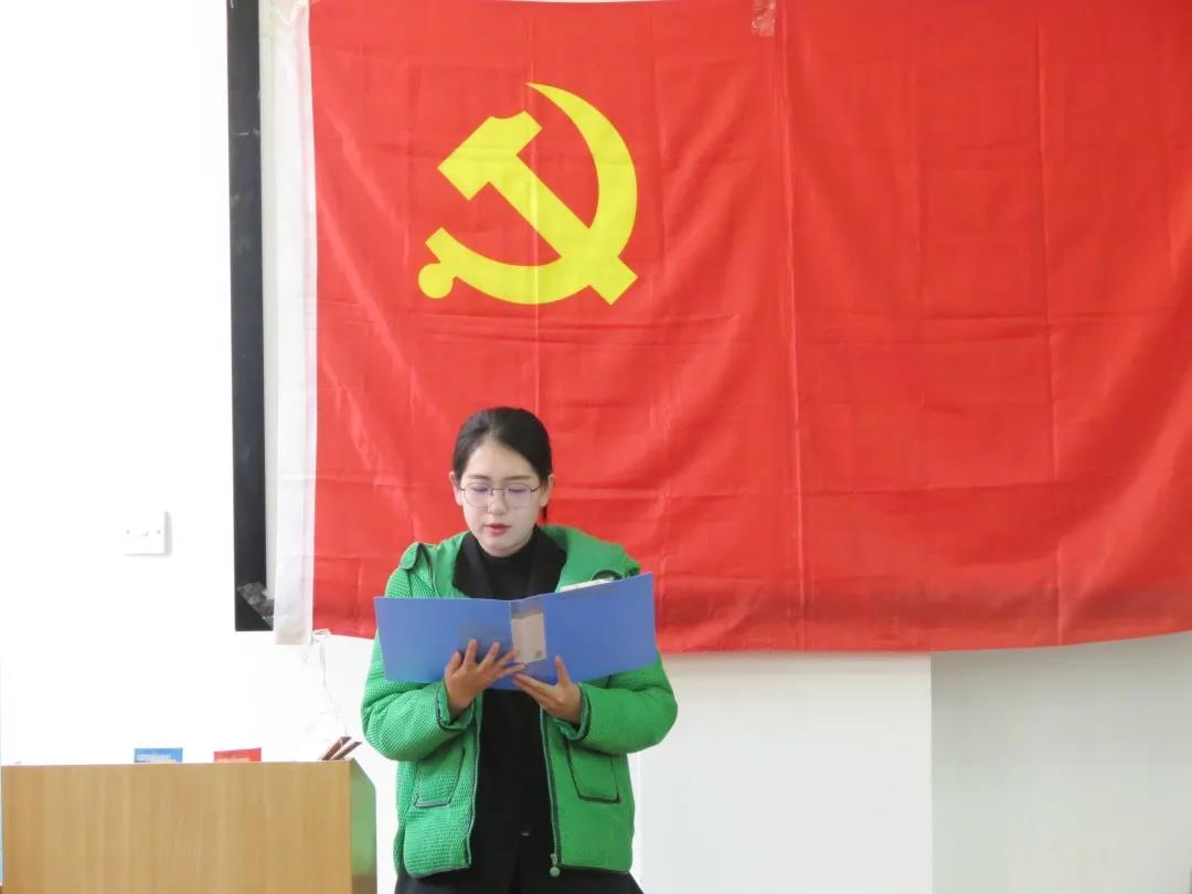 会上,王文瑄、张佳等13名同志就本人的基本情况、入党动机、对党的认识等需要向党组织说明的问题向大会进行了汇报。入党介绍人对培养过程中的事项和申请人的表现向支部大会做了介绍。与会党员对王文瑄、张佳等13名同志能否入党进行了讨论,全体与会党员通过无记名投票,最终同意接收王文瑄、张佳等13名同志为预备党员。预备党员们面对党旗进行庄严宣誓。
