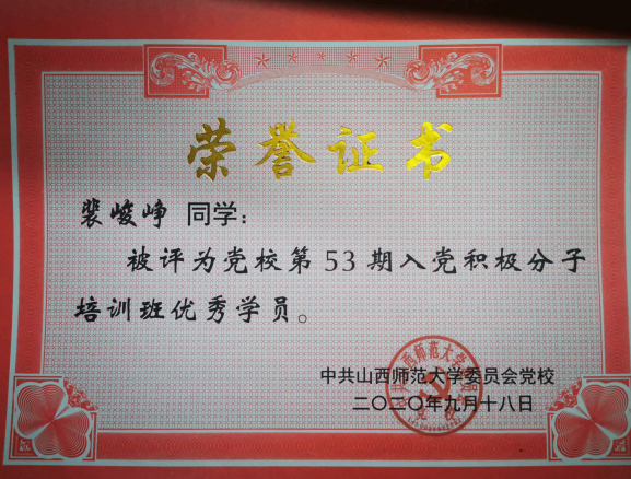 党员荣誉‖裴峻峥