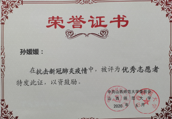 2020年抗击疫情优秀志愿者