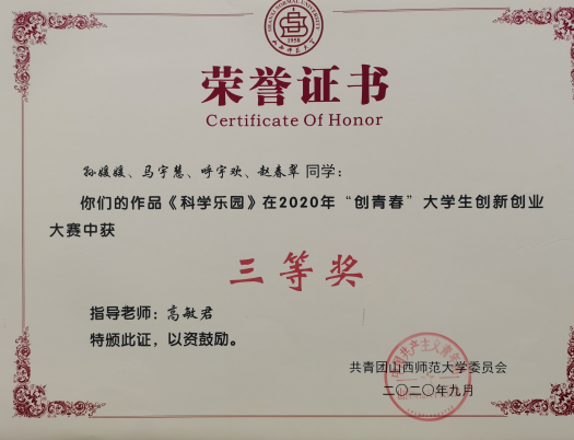 2020“创青春”三等奖