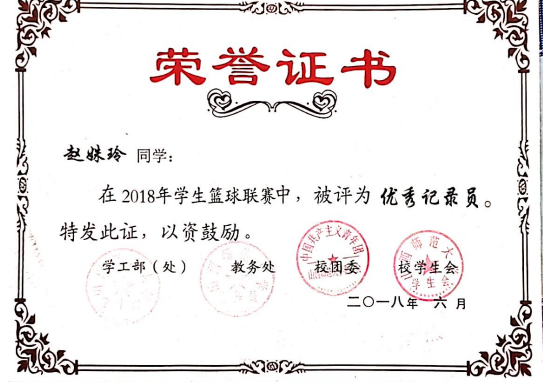 2019年员工篮球联赛优秀记录员