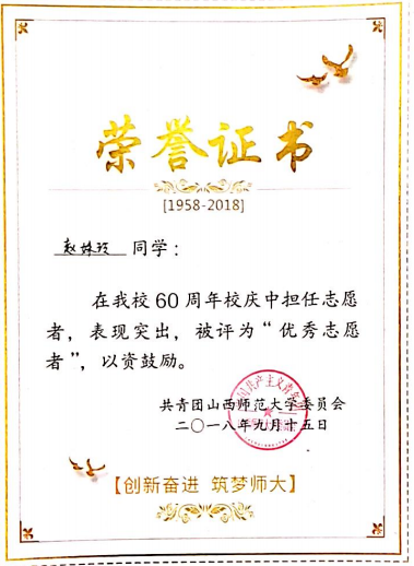 2018年60周年校庆优秀志愿者