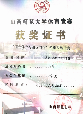 2019年冬季长跑比赛团体二等奖