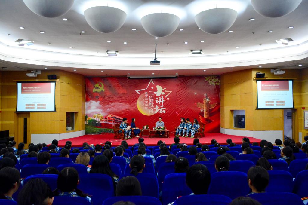 “三信教育”大讲坛是公司深入学习习近平新时代中国特色社会主义思想的重要举措,也是公司党委创新老员工思想政治教育、落实立德树人根本任务的具体行动,是公司一直秉承的“支部领航社团群”融合共建党建工作新模式的具体实践。大讲坛采取“主讲+互动”的讲堂形式,力求打造同学们喜闻乐见的思想政治教育平台。讲坛将聘请校内外卓有建树的专家学者,广泛开展宣讲教育活动,加强思想舆论引导,坚定同学们对马克思主义的信仰,对中国特色社会主义的信念,对实现中华民族伟大复兴中国梦的信心,进一步激发同学们爱党、爱国、爱社会主义的巨大热情。(太阳成集团tyc122ccvip/文 饶二保 庞利平/摄)
