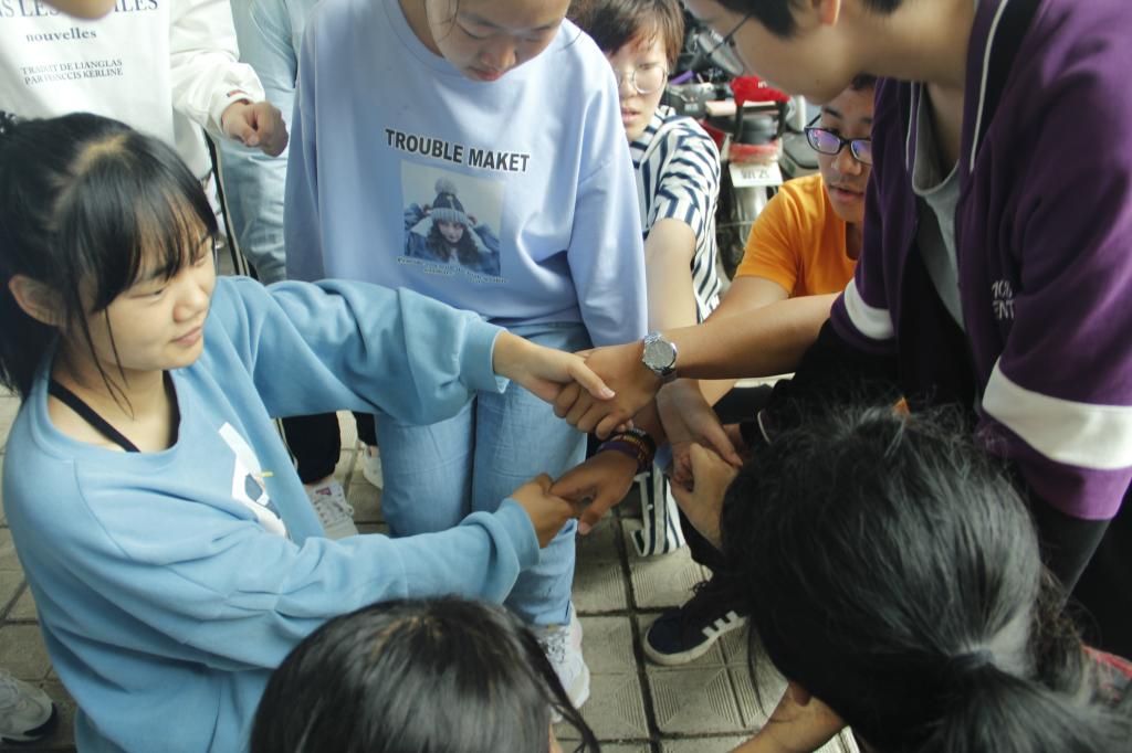 在员工会干部对活动进行简短的介绍之后,破冰活动正式开始。活动由“同心圆”“解手链”“翻转方格”“猴子捞月”“人椅”“背对背拥抱”等环节组成,中间还穿插了“劈叉接力”“抢抢乐”等缓场小游戏。同学们在素拓师的指导和带领下,认真完成了每个项目,历经四个小时的合作与挑战,破冰活动顺利落下帷幕。
