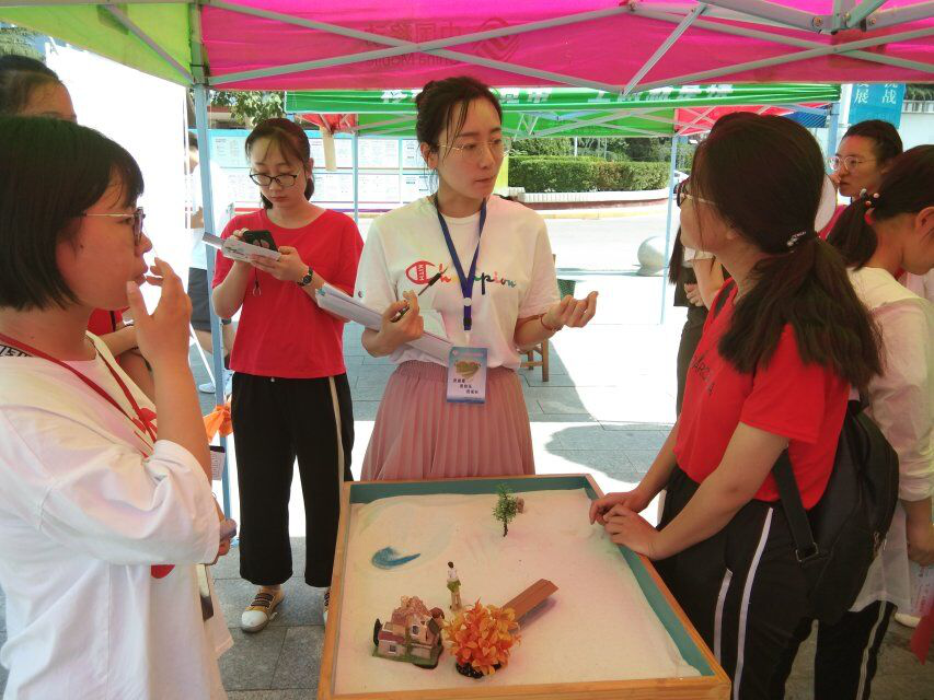 本次活动以“爱在盛夏,与爱同行”为主题。活动设有“价值拍卖”、“阳光抱抱”、“沙游魅力”、“OH卡牌”、“微笑表情包”等游戏项目。其中在“沙游魅力”项目中,参与者利用沙具自由创造沙盘世界,心理治疗师奉行“非语言治疗”的原则,通过守护性和陪伴性的观察,依托专业知识,陪伴参与者对沙盘世界进行深入探索,并适当作出具有建议性和隐喻性的诠释帮助参与者认识自我。