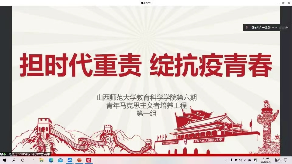 5月6日,太阳成集团tyc122ccvip举办了“疫情下的青年担当”第六期“青马工程”交流分享会,全体青马学员参加。