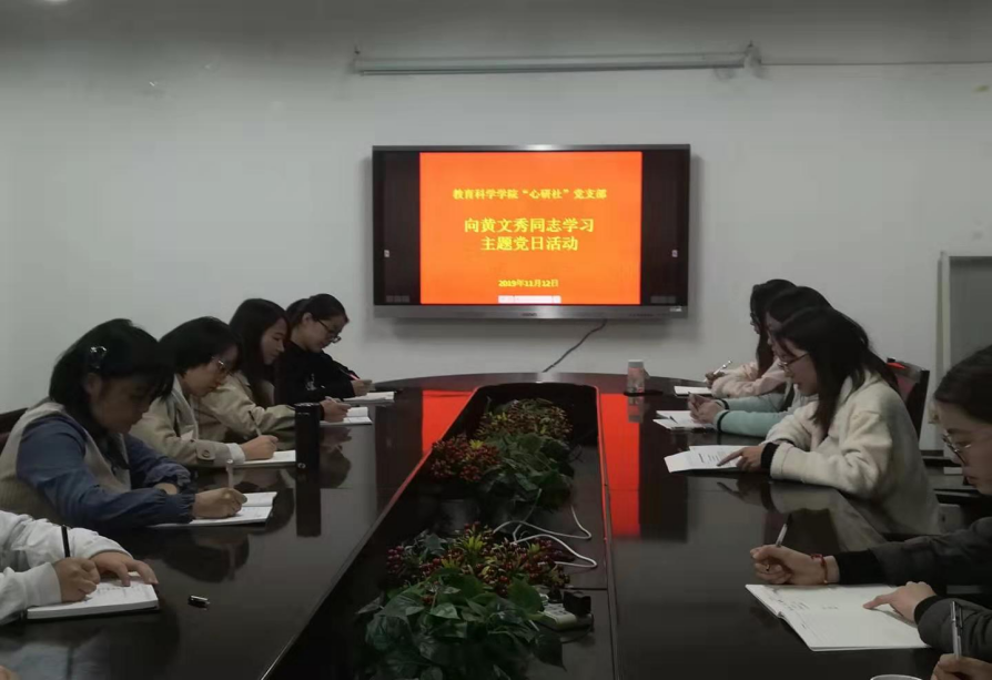 11月5日——15日,公司教育学专业教工党支部、学前教育专业教工党支部、教育技术学专业教工党支部、心理学专业教工党支部、研究生党支部以及“心研社”党支部召开“不忘初心、牢记使命”主题党日活动,各党支部学习了黄文秀同志先进事迹和党的十九届四中全会精神。