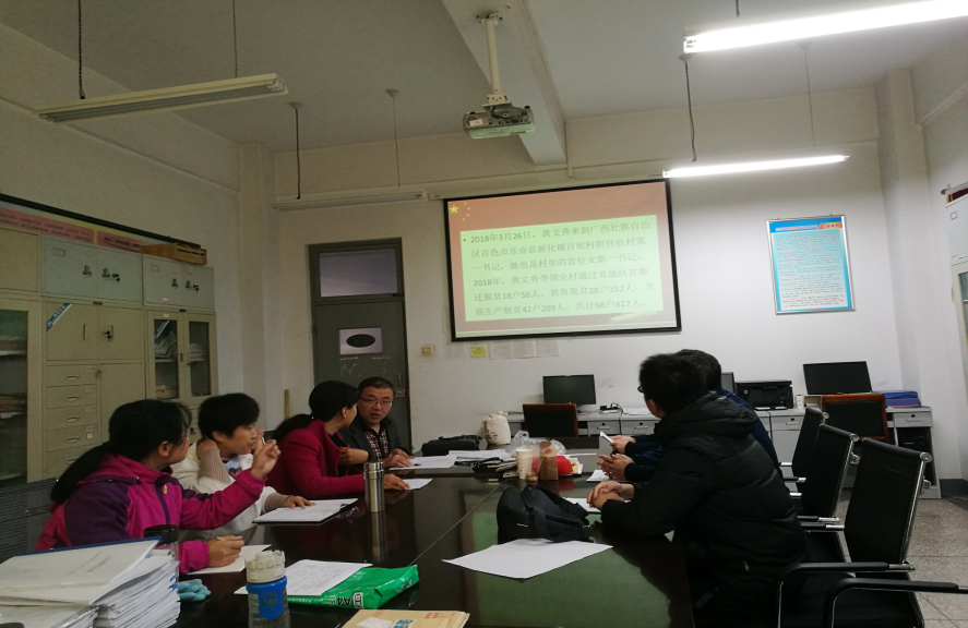 各党支部书记首先介绍了黄文秀同志在脱贫攻坚第一线倾情投入、奉献自我的先进事迹。随后大家集体观看视频《榜样》,深入了解了黄文秀的生平:黄文秀任乐业县百坭村第一书记,带领88户418名贫困群众脱贫,使当地贫困发生率从22.88%下降至2.71%。2019年6月17日凌晨,黄文秀遭遇山洪不幸遇难,献出了年仅30岁的宝贵生命,令在座党员为之动容。