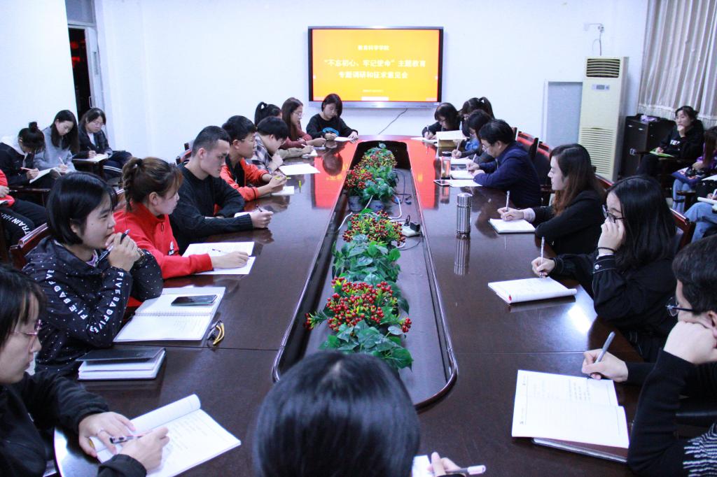 10月9日下午,太阳成集团tyc122ccvip召开“不忘初心、牢记使命”主题教育专题调研和征求意见会。公司党委书记吴文国、党委副书记高霞,专职辅导员周颖,心研社党支部党员代表、公司八个社团的社长及成员代表、团委员工会的员工干部代表参加了调研。